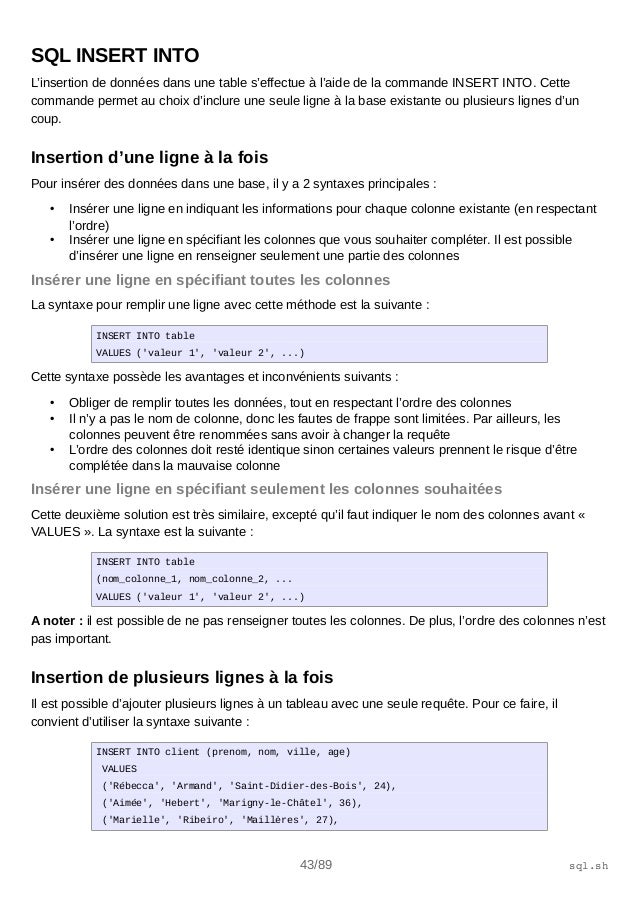 Insertion dune ligne à la fois pour insérer. La commande alter table en sql permet de modifier une table existante. Ajouter une ou plusieurs colonnes.