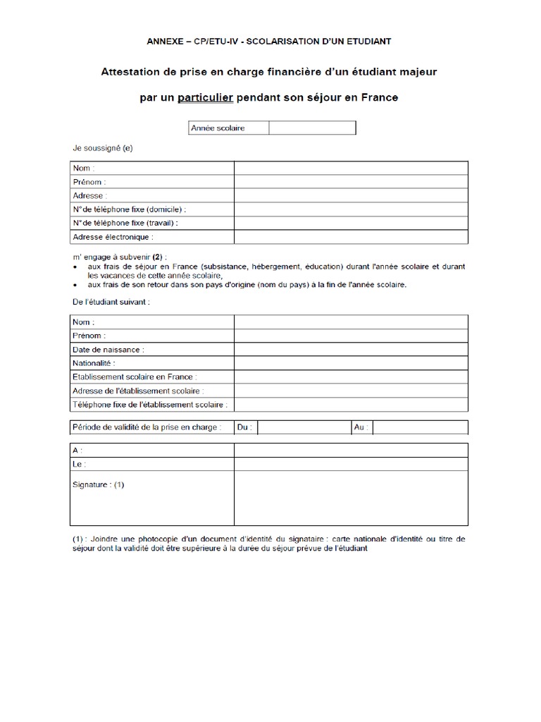 En fonction de la durée des études. 1 pour le logement la nourriture 2 2 par le versement dune somme mensuelle de 430 2. Toute personne qui a des ressources suffisantes pour supporter les frais de soins de santé de séjour détudes et de rapatriement dun étudiant durant une année académique ou pour toute la durée des études envisagées peut souscrire un engagement de prise en charge. Modèle attestation de prise en charge détudiants étrangers ci après. Exemple 1 dattestation de prise en charge je soussigné e madamemonsieur nom prénom n. Légaliser la signature de lhébergeant.