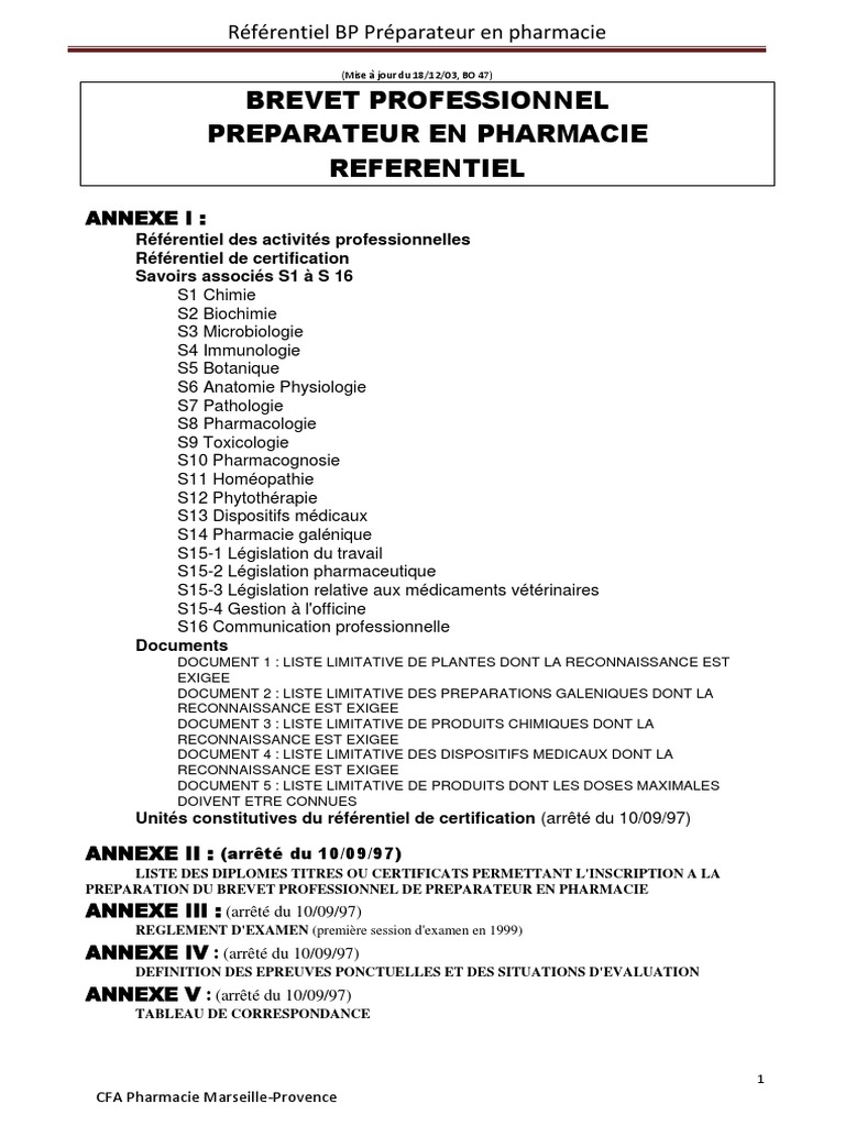 Elles entreront en vigueur dès la session 2015. Un arrêté en date du 12 mars 2015 paru au bulletin officiel page 48 fixe les nouvelles conditions des épreuves dexamen du brevet professionnel bp de préparateur en pharmacie.