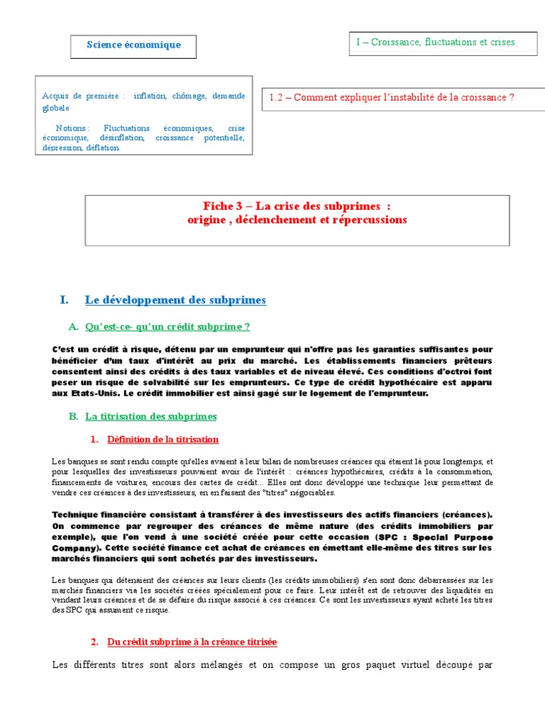 Crise des subprimes def. La crise des subprimes correspond à un phénomène qui a touché les etats unis à partir de 2007 et qui a entrainé une crise financière mondiale. Voici quelques explications pour mieux comprendre cette crise bancaire considérée comme la plus grave depuis la grande dépression de 1929 par audrey. Les subprimes sont des prêts immobiliers accordés à partir des années 2000 à des ménages américains qui ne remplissent pas les conditions pour souscrire un emprunt immobilier classique. La crise des subprimes. Les subprimes des crédits à risque accordés à des foyers américains ont été à lorigine dune crise qui sest transformée en crise financière internationale à lautomne 2008. Crise financière qui a commencé aux etats unis sur le marché du crédit immobilier après la forte augmentation du nombre de saisies dhypothèques en majorité de type subprime qui amena à la faillite de nombreux prêteurs hypothécaires banques et fonds spéculatifs.