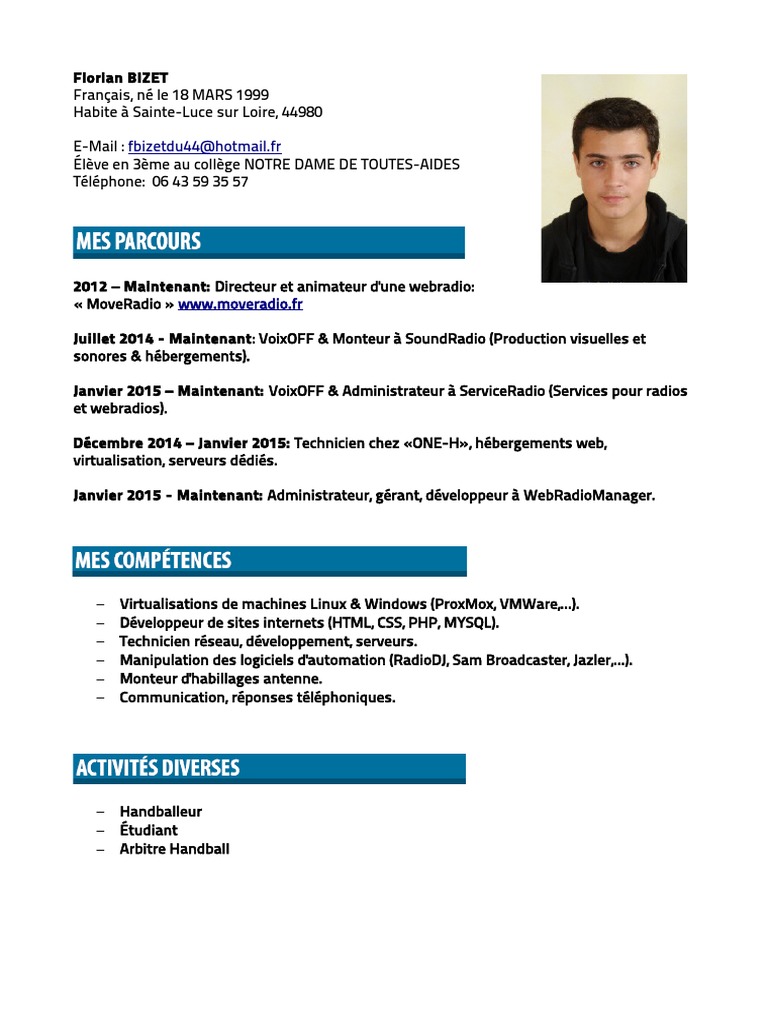 Cv l ve de 3 me. Sobre et épuré il impressionnera. Le stage dobservation de troisième est un bon moment pour faire un premier bilan en vue de votre orientation future et pour diffuser aux quelques contacts que vous pourrez rencontrer. Si vous avez besoin de vous inscrire en lycée. Convert documents to beautiful publications and share them. Cest la première occasion dapprendre à rédiger un cv ainsi quune lettre de motivation. Le stage dobservation de troisième est un bon moment pour faire.