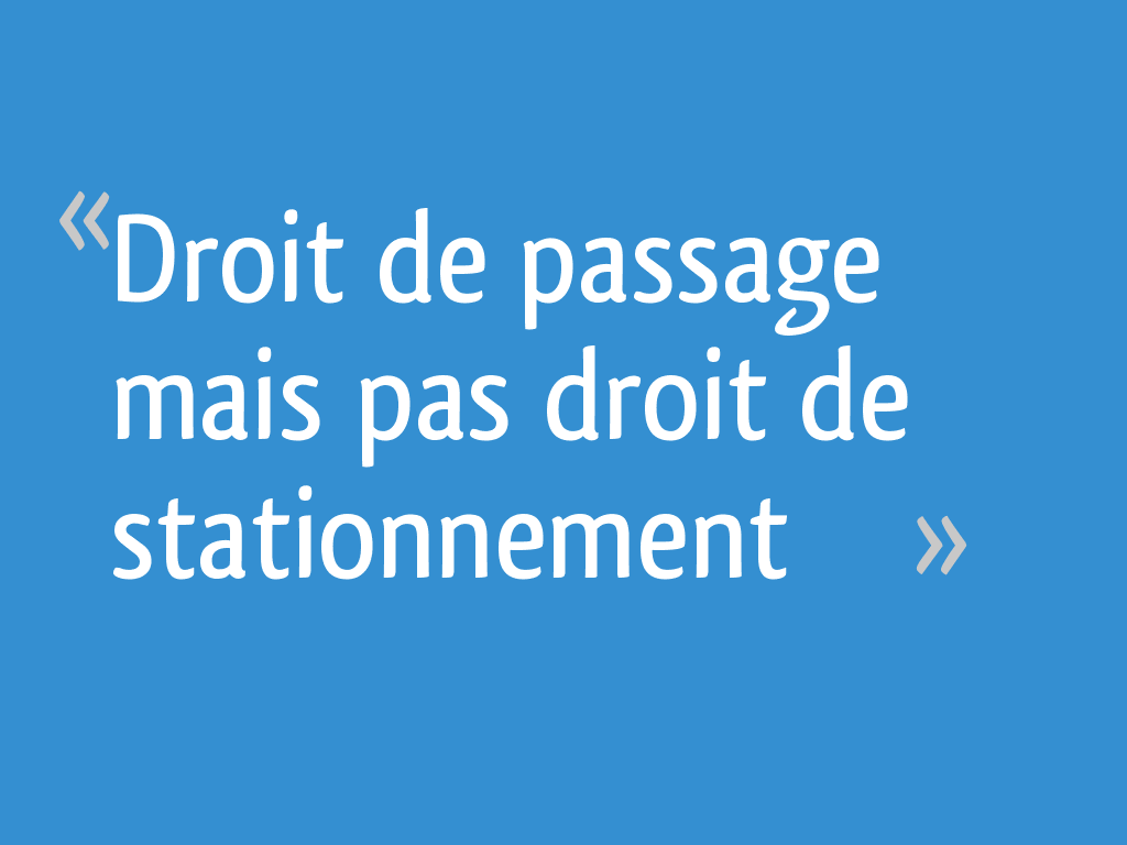 Droit de passage et stationnement. En cas de litige il est possible dans un premier temps de demander au voisin de respecter ce droit et de trouver un accord à lamiable avant dengager une procédure devant les juridictions civiles. En principe il nest pas possible de chasser sur une propriété privée sans autorisation du propriétaire. La cour de cassation rappelle que si le document qui établit la servitude ne prévoit pas le stationnement le propriétaire peut alors sopposer à ce que les voisins garent leur véhicule. Servitude droit de passage et stationnement la question de la servitude du droit de passage et de stationnement. Droit de passage et pas de stationnement. Les servitudes apparentes sont visibles grâce à la présence dun ouvrage extérieur.