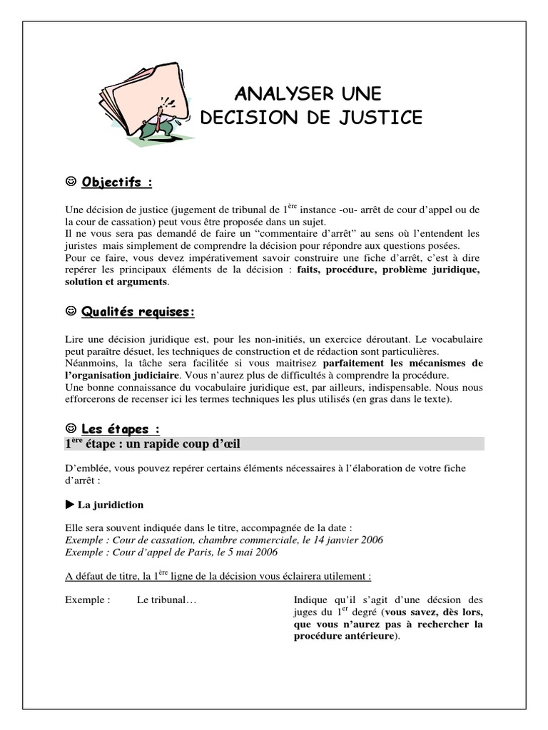 Exemple fiche d arr t. La fiche darrêt ou fiche de jurisprudence est sans doute lexercice qui vous sera le plus demandé en fac de droit. Vous pouvez cliquer ici si vous souhaitez lire larrêt avant lexemple de fiche darrêt. Le thème de larrêt est la conciliation entre le droit au respect de la vie privée et le droit à linformation du public. Larrêt utilisé dans ce billet pour illustrer la méthode de la fiche darrêt est un arrêt de rejet. La fiche darrêt porte sur un arrêt du ce ou de la cass le plus souvent. Dans ce billet je vous propose de mettre en oeuvre la méthode de la fiche darrêt de façon guidée à travers un exemple concret.