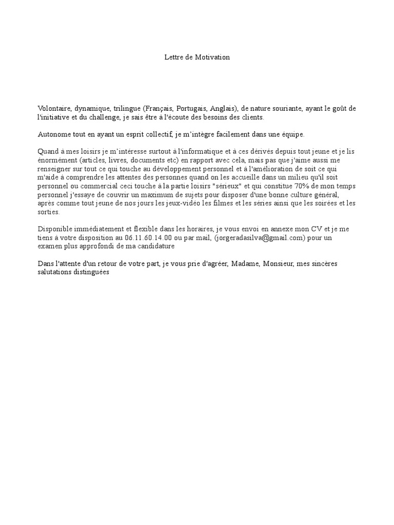 Je vous envoie une chemise on peut dire je vous prends une chemise donc cest bien le verbe qui prend un e à la première personne du singulier. Quand jenvoie un cv jy ajoute toujours une lettre de motivation. Je sors de chez m. Question mobilité je nai pas de point dattache donc je suis ouvert à tout déplacement national ou international. Je vous envois mon cv ce jour. Mon gouvernement je vous fais tenir ci joint conformément au paragraphe 19 de la résolution 1737 2006.