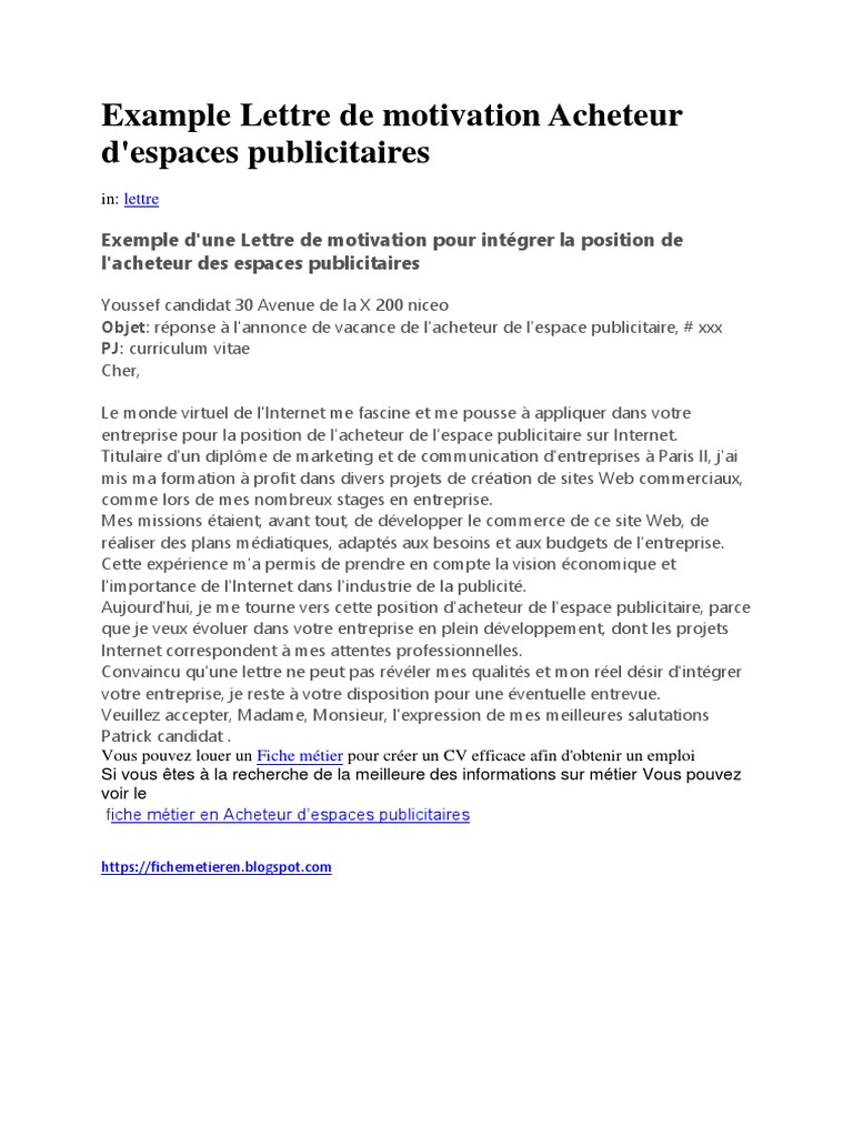 Cette lettre de motivation pour un poste dacheteur international permet de répondre à une annonce. Le parisien propose des lettres types gratuites pour vous aider à simplifier votre quotidien lettres de motivation madame monsieur jeune diplômée de lenseignement supérieur de niveau bac après avoir effectué un dut techniques de comalisation et.
