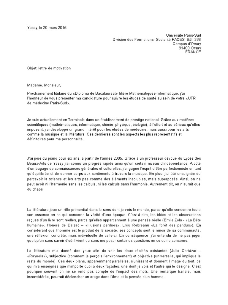 Lettre de motivation paces. Je conclurai cette lettre par une citation qui révèle avec justesse ma vision de la médecine et jespère vous avoir convaincu de ma sincérité et de ma motivation pour intégrer une formation paces à la rentrée 2016. Télécharge gratuitement cet exemple de lettre de motivation pour pass ou las anciennement paces au format wordtu souhaites réaliser des études de médecine pour devenir chirurgien médecin kiné dentiste au moment de réaliser ta candidature sur parcoursup il te sera demandé de rédiger une lettre de motivationutilise notre modèle de lettre de motivation pour pass ou las et. Vous trouverez dans cette fiche un exemple de lettre de motivation à télécharger. Et pour finir perso je naccroche pas trop au être à lécoute de la personne et lui prodiguer des soins en tant que médecin ça fait très utopique image idéalisé de la médecine que peut avoir un lycéen. Je vous prie de recevoir cette lettre comme étant un témoignage de ma détermination pour obtenir ce concours paces. Floups jeune bizute messages.