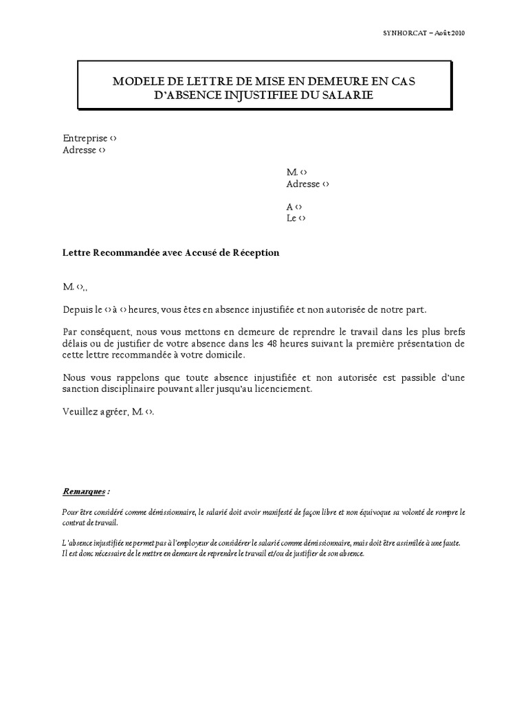 Définition dune mise en demeure. Je vous mets donc en demeure de me payer la somme de xx dans un. Il vous est recommandé avant de déposer votre demande à la division des petites créances denvoyer une mise en demeure à la personne que vous désirez poursuivre. Nom et prénom du débiteur. Modèle de mise en demeure pour troubles de voisinage. Modèle de mise en demeure pour remboursement de prêt.