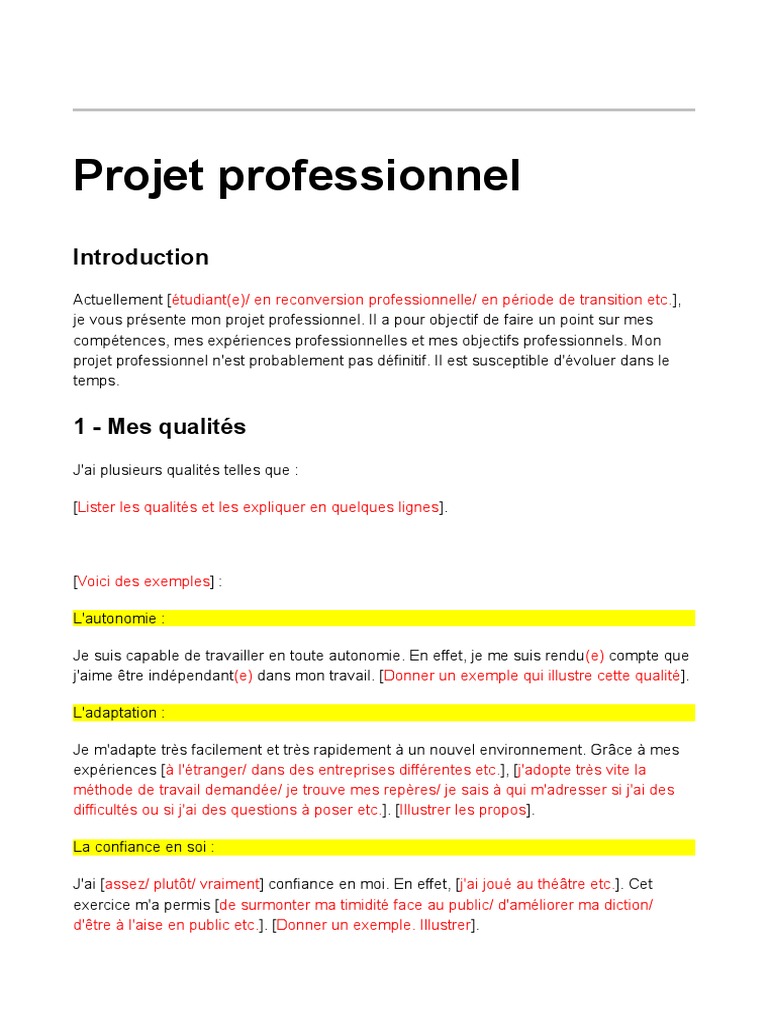 Rédiger son projet professionnel ou le présenter à loral nécessite une certaine préparationcest avant tout une méthodologie quil faut apprendre cest pourquoi nous vous livrons quelques conseils ainsi que deux exemples pour une lettre de motivation et pour un entretien dembauche. Je suis porteur dun projet de création dune entreprise qui est au stade de business model orienté vers linnovation le conseil organisation le développementqualité et de systèmes de gestion dentreprises qui visent à faciliter leur pilotage par recours aux outils modernes de gestion assis sur la refonde des systèmes organisationnels des indicateurs de performances des. La réalisation de mon projet professionnel iii. Notez que le présent modèle de projet professionnel est un modèle type. Réponses dexperts plus de 3 000 modèles de lettres et contrats à télécharger gratuitement. Ce rapport illustre mon projet professionnel et donc ma vision de mon futur emploi.