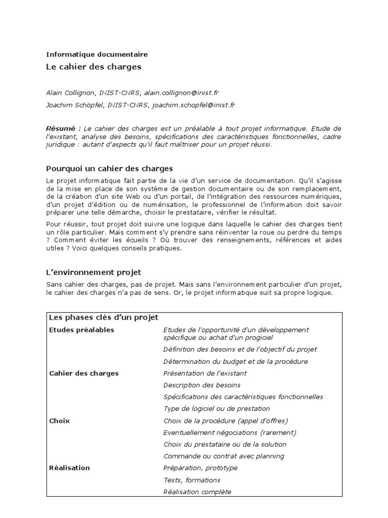 Tout Projet Doit Partir D Un Cahier Des Charges Detaille
