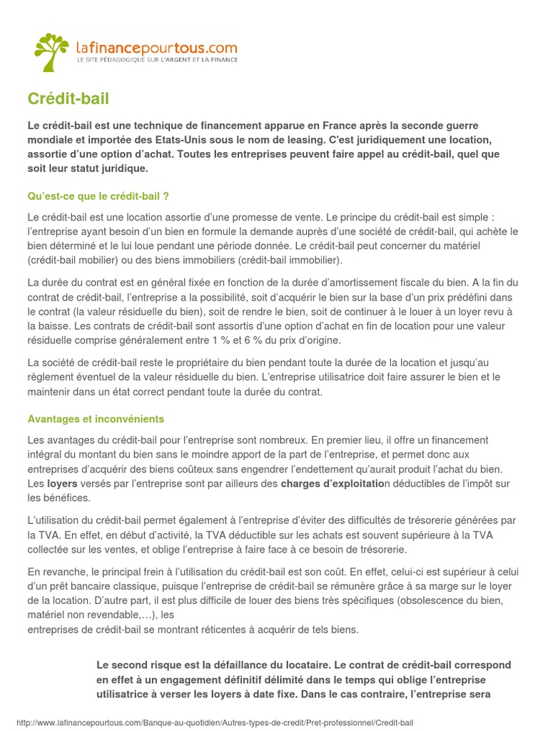 Quest ce que le leasing. Le leasing est un terme anglais dont la traduction française est crédit bail.